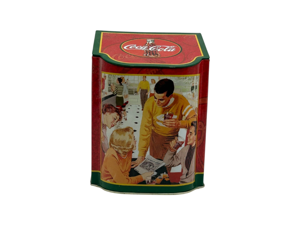 The Coca-Cola soda tin is one of the most iconic pieces in the world of vintage advertising tins. Released in the early 20th century, these tins were used to store soda syrup and other promotional items, often bearing the classic Coca-Cola logo. The color and design evoke nostalgia for a time when soda was enjoyed in glass bottles at local soda fountains. Collectors value these tins for their vibrant artwork and the history behind Coca-Cola’s marketing efforts. The tins were originally produced in various sizes, with some featuring embossed designs that made them even more collectible.