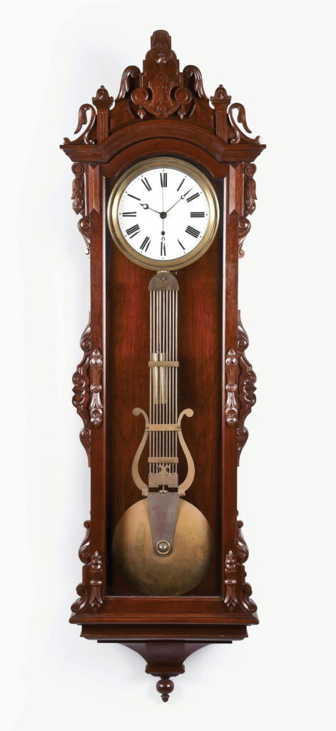 D.J. Gale was known for creating specialized timepieces with additional functions, such as this astronomical calendar clock. The clock’s calendar feature allowed users to track both the time and specific celestial events, making it a unique and valuable piece. Its precision and versatility have made it a favorite among collectors of rare clocks. The combination of craftsmanship and utility ensures that this clock remains a desirable item. Today, it continues to be highly valued for its historical and functional significance.