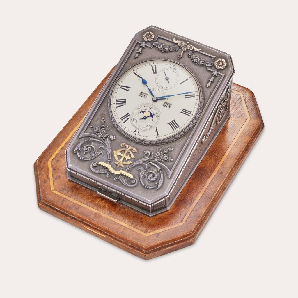 Released in 1927, the Patek Philippe paperweight clock is a rare find, with only three known to exist. This clock was designed as a personal piece for the American collector Thomas Emery, making it unique. The clock features intricate complications that were ahead of its time. Originally, the price was not disclosed, as it was a bespoke item for a private collector. Today, it is estimated to be worth between $500,000 and $1 million due to its rarity and complex design.