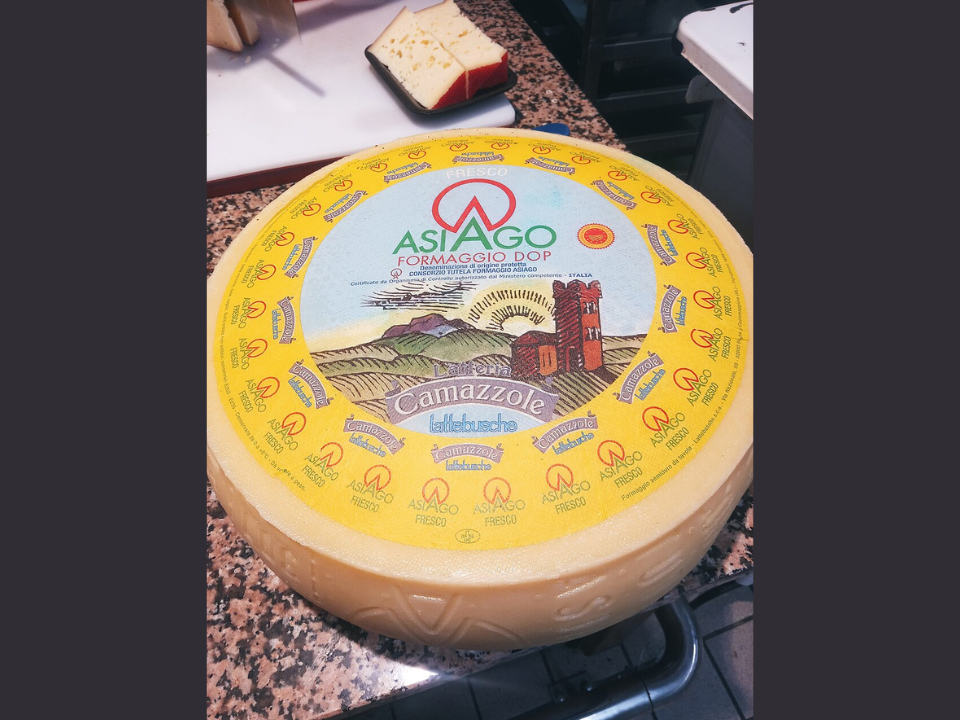 Asiago is an Italian cheese made from cow’s milk, originating in the Veneto and Trentino regions of northern Italy. The cheese comes in two varieties: Asiago Pressato, which is fresh and mild, and Asiago d’Allevo, which is aged and has a stronger, more complex flavor. Asiago has a firm texture, and the older versions can have a crumbly consistency with a sharp and tangy taste.