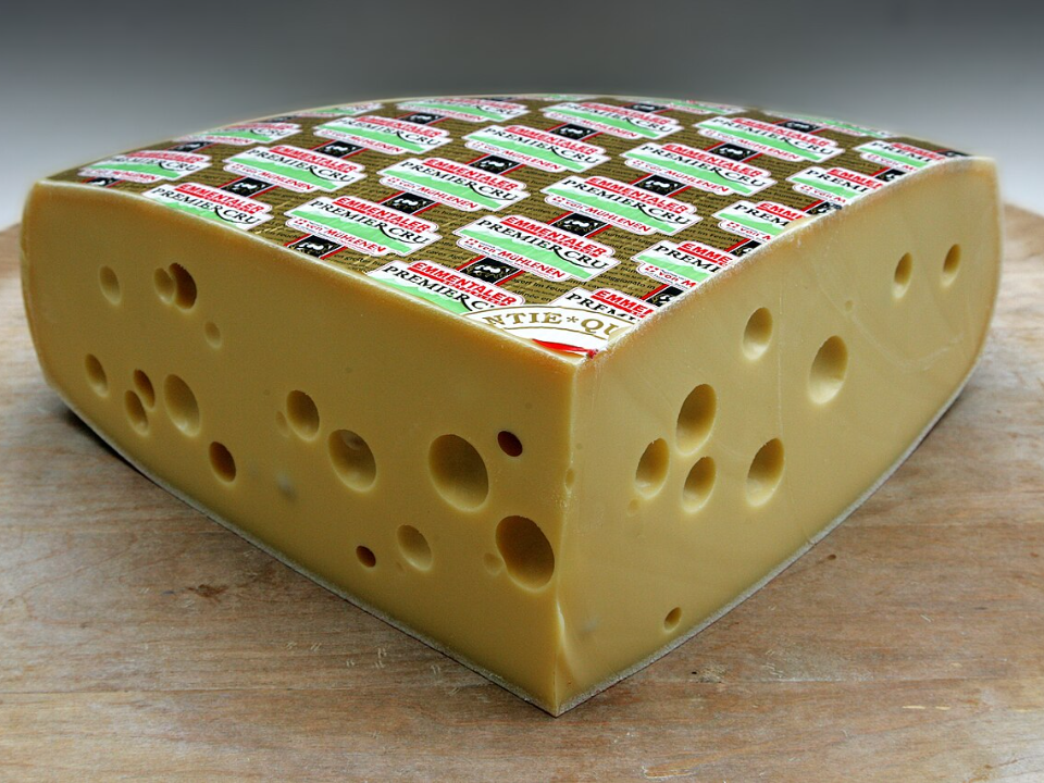 Emmental is a Swiss cheese known for its characteristic holes and nutty flavor. Originating from the Emmental Valley in the Swiss Alps, this cheese is made from cow’s milk and is typically aged for several months to develop its smooth, firm texture and mild, buttery taste. The cheese is traditionally made in large wheels, and during the aging process, the fermentation gives it a slightly sweet and tangy flavor.