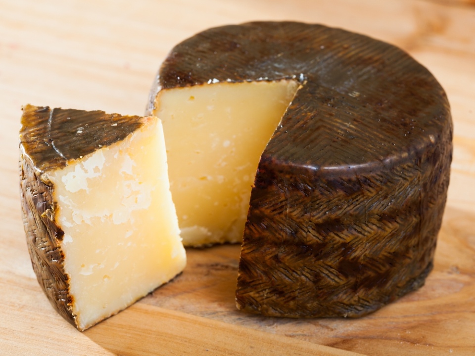 Manchego is a famous Spanish cheese originating from the La Mancha region, made from the milk of Manchega sheep. The cheese is produced in various ages, with the youngest being mild and soft, and the older varieties developing a sharper flavor. The rind of Manchego is firm and often waxed, which helps preserve the rich, nutty flavor that characterizes this cheese. Its interior is slightly crumbly, with a creamy texture that becomes firmer the longer it is aged.