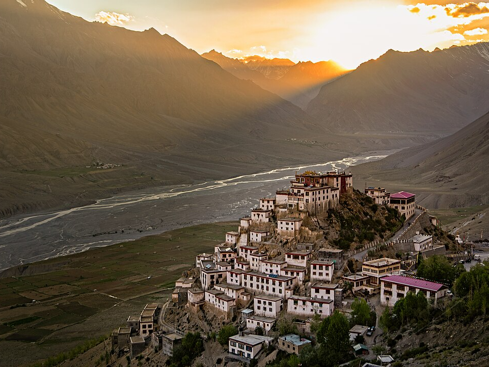 Perched high in the Spiti Valley of Himachal Pradesh, Key Monastery overlooks the winding Spiti River. It serves as a vital center of learning for young monks and holds centuries-old murals and manuscripts. The whitewashed structure rises like a fortress, reflecting the resilience of the faith that built it.