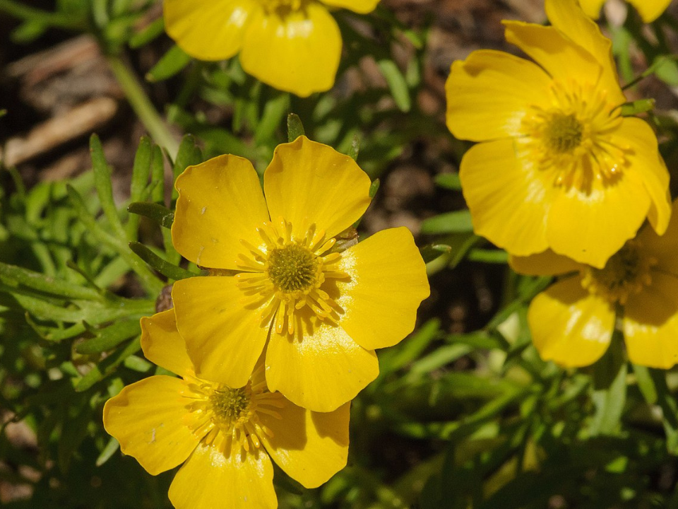 Alpine buttercup is a hardy perennial that thrives in high-altitude cliff habitats. Known for its striking yellow flowers, this plant is well-adapted to survive in cold, rocky environments. It has developed a deep root system that allows it to anchor securely into the soil or rock surfaces.