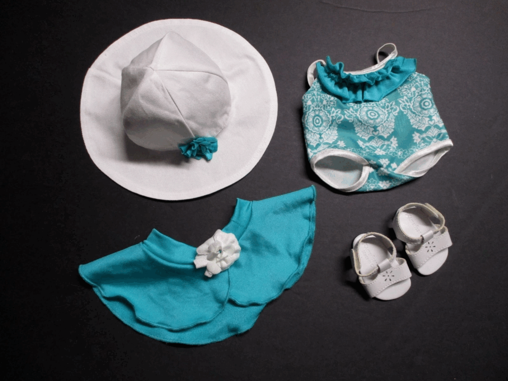 The Bitty Twins Swimsuit Set, released as part of the Bitty Twins line, was retired when the line shifted to a new format. Retired in 2014, this outfit typically sells for $15 to $35. Despite the smaller following for Bitty Twins, this swimsuit set remains a favorite for collectors of the smaller dolls. The bright, playful design adds a fun and colorful touch to any collection.