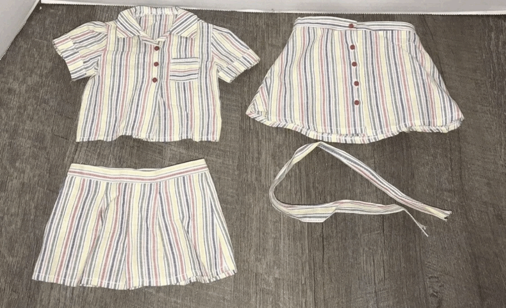 These jumpers have a simple yet beautiful design that appeals to fans of older American Girl dolls. The rarity of these early pieces adds to their value, and they are often sought by those who want to complete a vintage collection. The outfit’s understated style makes it perfect for both casual and historical-themed displays. Fans of the Pleasant Company era often look for these items to reflect the brand’s original spirit.
