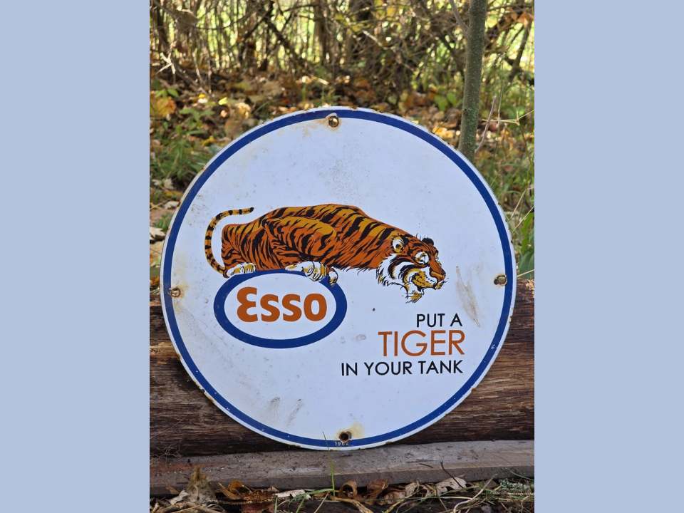 Prices for these signs typically range from $250 to $400, depending on size and the condition of the piece. The tiger logo itself is considered a rare and desirable variation, so well-maintained signs featuring this image can command higher prices. The appeal lies in both the Esso brand’s legacy and the charming nature of the tiger mascot.