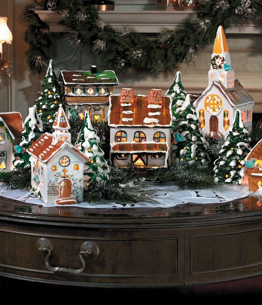 The Original Snow Village by Department 56 began the modern tradition of collectible Christmas village displays in 1976. Its hand-painted ceramic houses, churches, inns, and cottages evoke a quaint, snowy small-town feel that many associate with classic holiday scenes. Setting up an Original Snow Village invites nostalgia of winters past and cozy evenings by the fire. Using soft lighting and faux snow or cotton over its bases adds to the wintry atmosphere. This village works well on a mantel, shelf, or side table for evenings spent sipping cocoa and sharing stories.