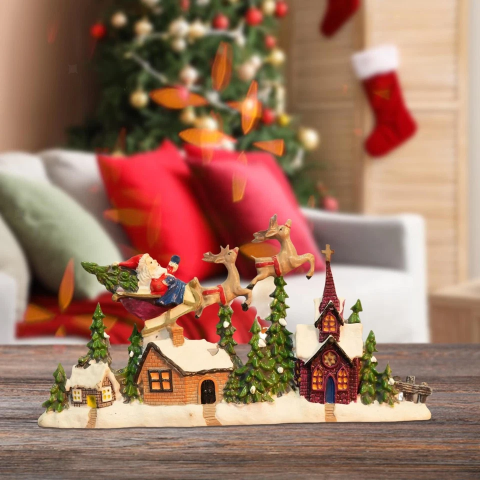Some modern village house sets use vinyl or resin to recreate vintage holiday scenes, complete with small detailed buildings and LED lighting. These sets tend to be lightweight and easier to handle than older ceramic models, which makes them suitable for apartments or smaller living spaces. Placing a lighted village set on a side table, entryway console, or as a centerpiece under the tree can create an instant festive mood. Soft internal lights make the houses glow as evening falls, giving that cozy nostalgic winter-night vibe. Because they are more durable than paper or ceramic, they are practical for households with children or pets.