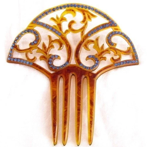 Such combs were often worn tucked into an updo or toward the back of the head during formal occasions. If you find one designed with a fan-shape or ornate scrollwork, it tends to attract more attention. Protect it from heat and humidity. When buying or storing one, it’s wise to check for signs of warping or chemical smell These pieces are small but carry a lot of vintage character.