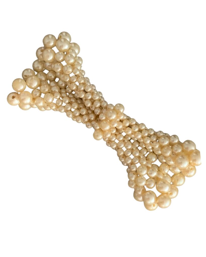 A decorative barrette from the 1950s featuring faux pearls, pastel enamel bow design and gold-tone metal is a classic accessory. These pieces can fetch roughly $40 to $70 if well kept. Any damage to the enamel or missing pearls will lower value significantly. If the clasp is original and marked, that adds to the worth.