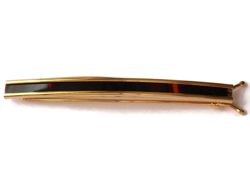 This accessory from around the 1960s features a faux tortoiseshell plastic body, often with a gold-tone metal clasp or accent. The warm amber pattern and mid-century styling give it charm, and because genuine tortoiseshell was phased out, these pieces feel rare. Today, a good example in excellent condition might fetch $25 to $40. Condition matters a lot – scratches, faded colors, or a worn clasp will reduce value. If you find one marked Made in France or West Germany, that can add a small premium.