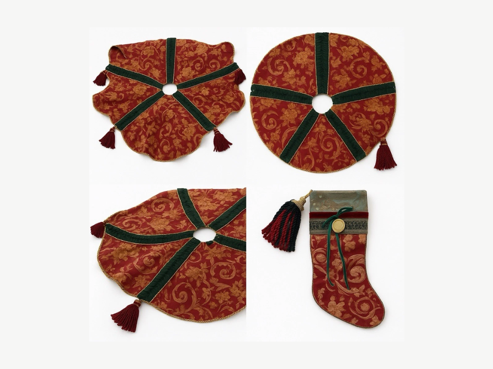 Collectors often look for accompanying textiles such as tree skirts, table runners, or cushion covers with holiday themes that match a stocking design. This helps recreate a full vintage holiday scene rather than isolated pieces. Tree skirts from certain vintage collections have sold for over $1,100 in premium home‑decor shops.