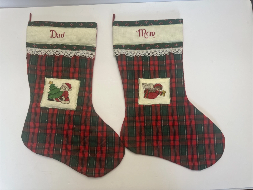Stockings that bear embroidered names or monograms are sought after because they show personalization that ties them to a specific household. They may have belonged to a family for generations as part of holiday traditions. The stitching may show wear or fading but still hold sentimental value, especially when the name corresponds to a common family name.