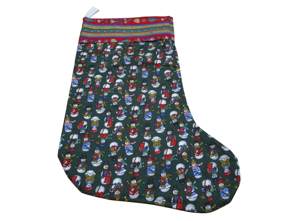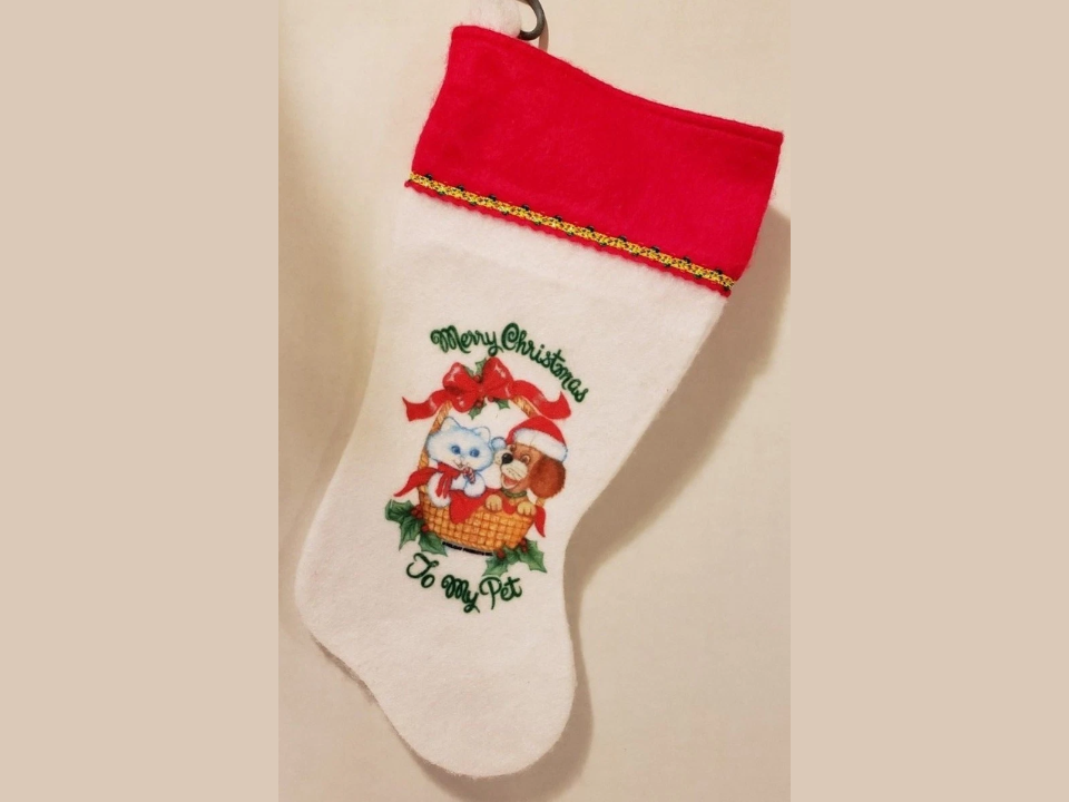 Beyond traditional Santa or reindeer, some retro stockings depict animals, toys, or playful scenes such as children building a snowman or woodland creatures carrying gifts. Often these were sold for use in children’s rooms or to hang on a fireplace mantel. The fun themes make them feel more like holiday whimsy than formal décor.