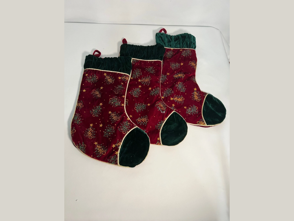 Owning a set offers aesthetic completeness that single pieces do not yield. On curated sites a set of three velvet or beaded stockings was listed at about $95 for the set. The completeness adds value especially if none of the stockings show heavy wear or damage.
