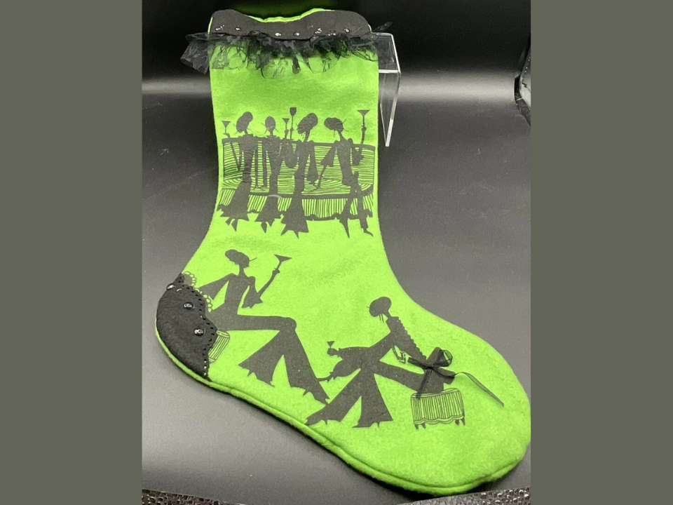 Some retro stockings include beadwork or sequins stitched onto felt to depict ornaments, stars, bells or holly leaves. The small beads or sequins add shimmer under holiday lights which evokes nostalgic holiday dinners or fireplace gatherings. Because small beads may fall off or dull over time, a stocking that still holds all original decoration is prized.