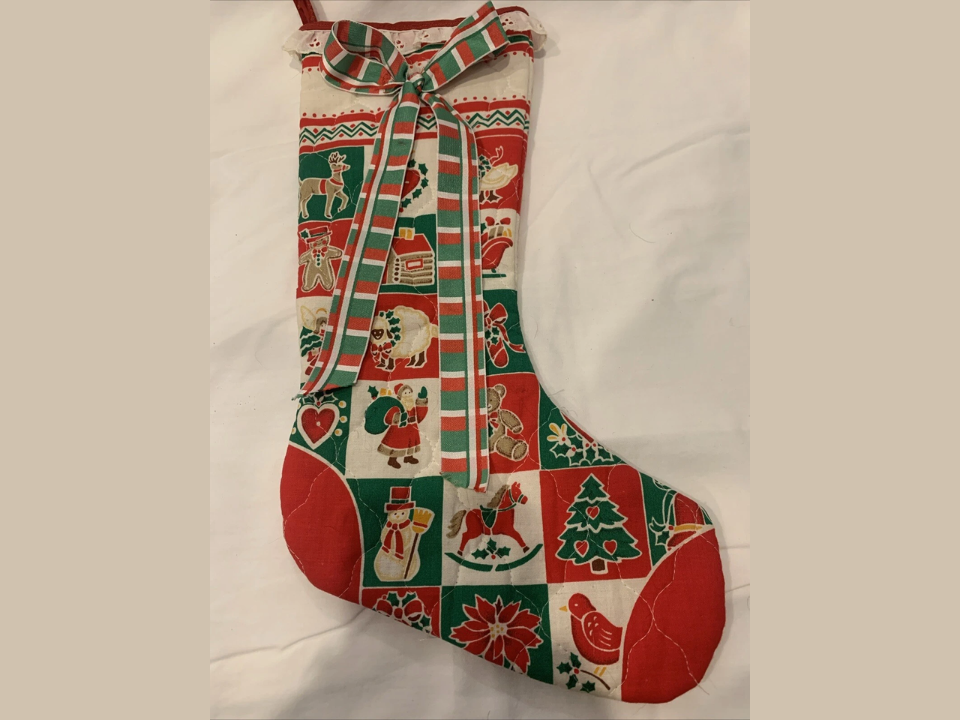 Because quilting offers durability, many such stockings last decades with only minor wear. Collectors who favor older home‑made or home‑sewn items particularly value them. Market value for a good example might range from $30 up to $60 or more depending on condition and uniqueness.
