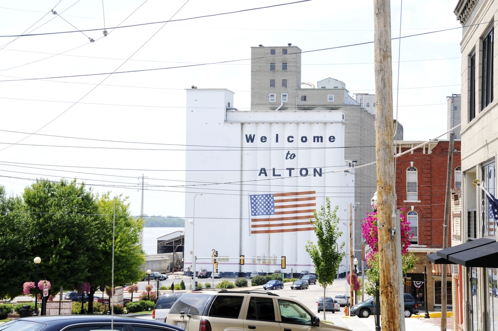 Alton’s Mississippi River flood walls display murals that focus on river travel and local events. The paintings bring warmth to tall protective surfaces near the downtown area. These images connect the town’s past with its present riverfront use. The river remains visible just beyond the walls.