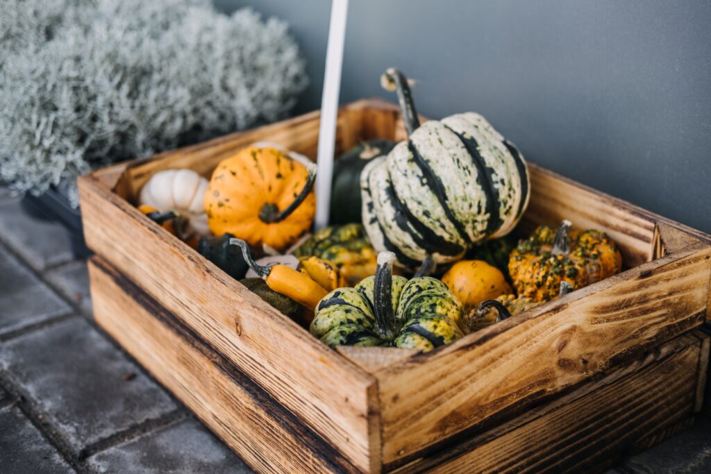 Try mixing different shapes and colors of pumpkins for variety. You can even tie a bow of twine around each crate for a rustic finish. When the season changes, swap out the pumpkins for pinecones or winter greens. It’s a flexible decoration that feels warm and charming.