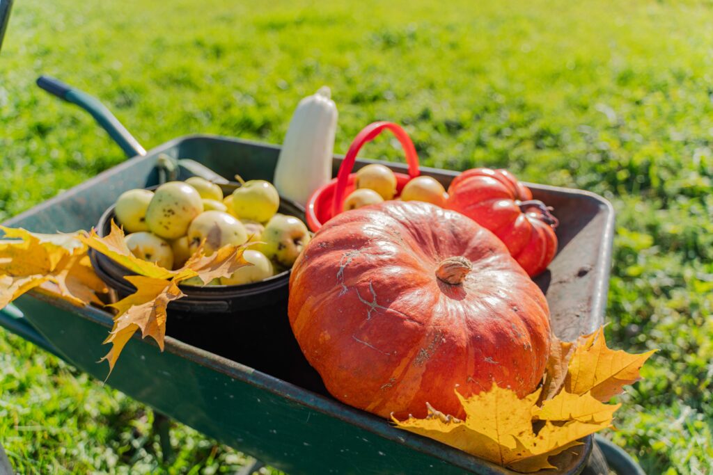 An old wheelbarrow makes the perfect base for a rustic display. Fill it with a thick layer of hay and tuck in a few pumpkins of various sizes. Add small bundles of dried corn or mini gourds for more texture. Position it at an angle near your porch or garden to look like a natural harvest spill.