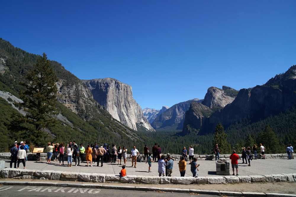 Tunnel View in Yosemite National Park offers one of the most famous views of the park, including El Capitan, Bridalveil Fall, and Half Dome. The overlook is located just off the main road, with parking available close by, allowing for easy access. Visitors can pull into the parking area, walk a short distance to the viewpoint, and be immediately immersed in one of the most iconic scenes in the park. The accessibility of this spot makes it perfect for quick stops to take in the natural beauty of Yosemite Valley.