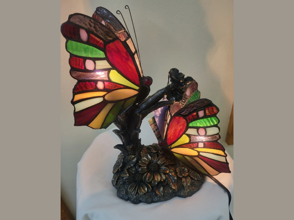 Inspired by the delicate wings of a butterfly, this lamp features sculptural elements that resemble the intricate patterns found in nature. The design uses glass and metal to mimic the delicate transparency and symmetry of butterfly wings. When lit, the light shines through the wings, casting beautiful shadows on surrounding surfaces.