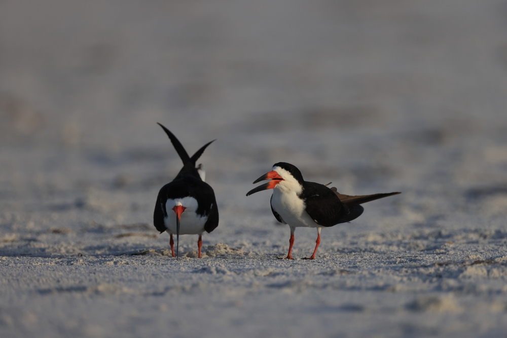 These birds often rest and nest in open sandy places near other coastal birds. Their feeding style is one of the most unusual sights on the shore because they fly low with the lower bill touching the water. Even from a distance, their black and white coloring is easy to notice. Near evening, a group of skimmers can be especially striking along a calm beach.