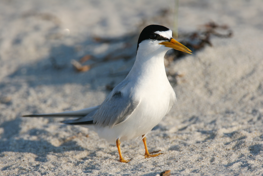 Least terns return to breeding sites in spring, which makes them much easier to notice along beaches and estuaries. They are native to the United States, Canada, Mexico, Central America, and parts of South America. This small bird flies with quick wingbeats and often hovers before dropping down for fish. Its small size sets it apart from gulls nearby.