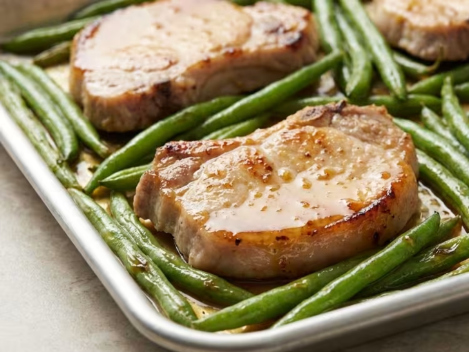 Pork chops and green beans make a very practical sheet pan dinner because the sweet and tangy coating gives the meal plenty of flavor without much extra work. It takes about 12 minutes to prep and around 25 to 30 minutes to cook. The pork stays juicy when watched closely, and the beans turn tender with a little browning. This meal feels balanced without needing many side dishes.