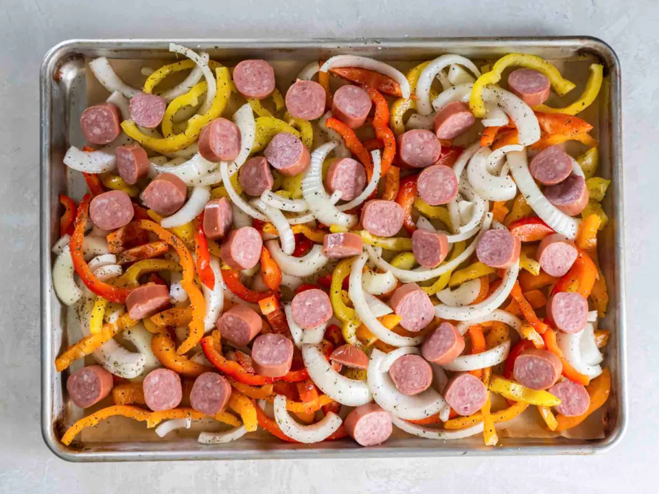 A pan of sausage and peppers is a favorite because it turns a few basic ingredients into a full meal with very little effort. Prep usually takes about 10 minutes, and the cooking time is around 30 minutes. The peppers become soft and sweet in the oven, while the sausage browns and gives off plenty of flavor. This is also a good meal for serving with rice, bread, or even on sandwich rolls.