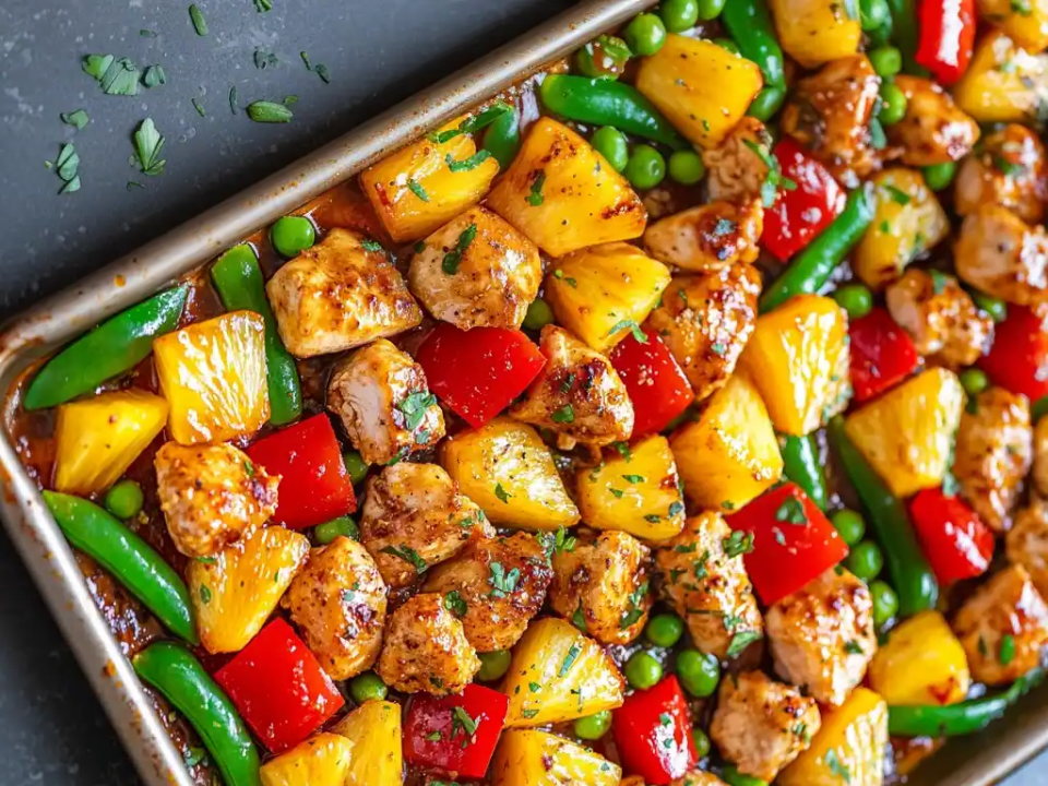 Sweet pineapple and savory chicken make this meal stand out, and the sheet pan keeps the cooking process very easy to manage. It takes about 15 minutes to prep and 25 to 30 minutes to cook. The sauce thickens a little as it roasts, which helps coat the chicken and vegetables. Rice on the side turns it into a full dinner without much extra work.