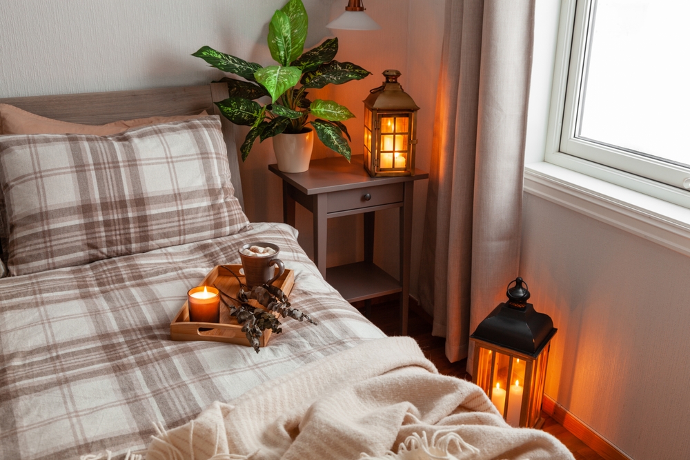 Candles also provide a warm, ambient glow that adds to the coziness of your room. When choosing scented candles, opt for those made with natural waxes like soy or beeswax to avoid harmful chemicals. Place them in safe locations away from anything flammable, and always extinguish them before going to sleep. Whether you prefer candles or a diffuser, this simple addition can improve the ambiance of your bedroom, helping you get better rest. The soothing scents will create a comforting, inviting atmosphere that’s perfect for winter nights.