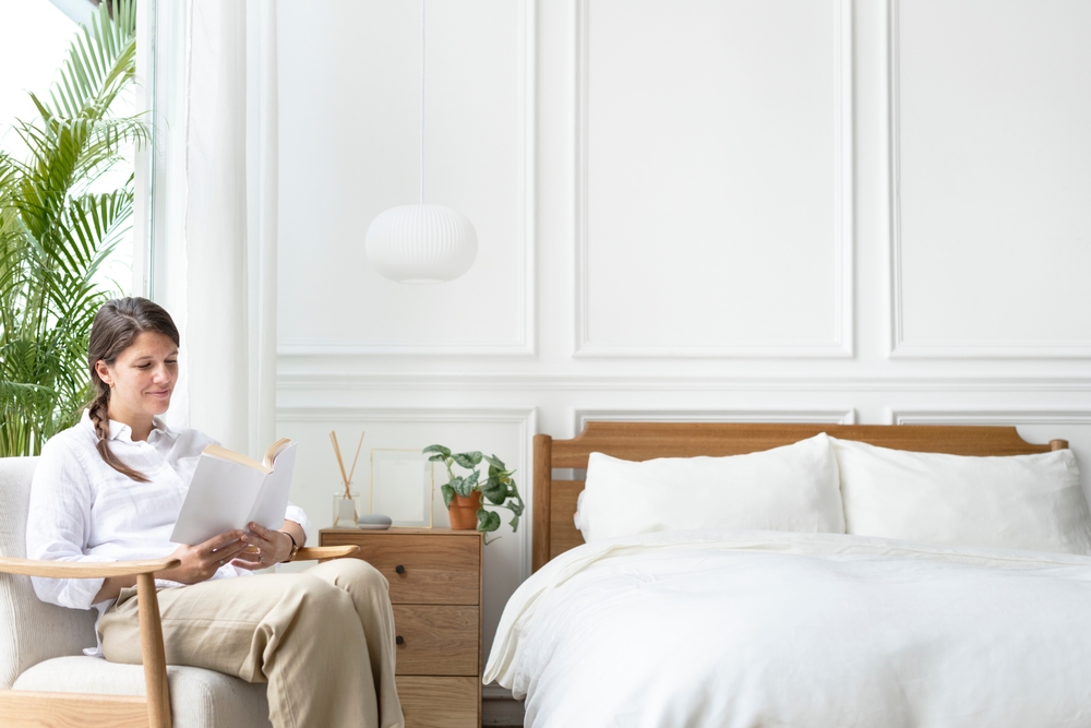 Setting up a cozy reading nook in your bedroom is a great way to unwind before bed and prepare for sleep. Place a comfortable chair or cushion near a window or under soft lighting to create an inviting space. Add a blanket and a few pillows to make the area extra cozy, perfect for reading or enjoying a quiet moment. This space will encourage relaxation, helping you transition from the busy day to a peaceful night. You can also use this time to wind down with a good book, which can help calm your mind before bed.