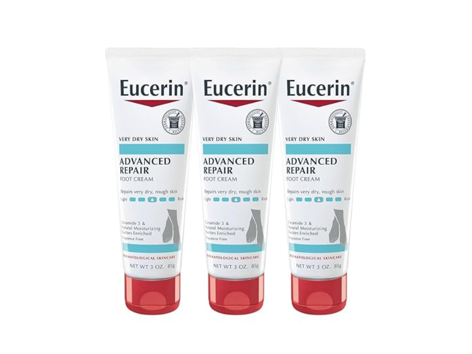 Feet are often ignored until they become cracked or painful in cold weather. A thick repair cream like Eucerin Advanced Repair Foot Cream helps soften rough heels and prevent cracks. After a warm shower or bath, apply the cream to your heels and feet before bed. Covering with cotton socks can help the product absorb more deeply.