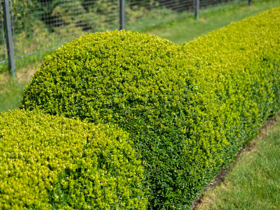 Boxwood is a classic evergreen shrub known for its neat, dense foliage. It is one of the most popular choices for creating low-maintenance hedges or topiary. Boxwoods are slow-growing, typically expanding by only a few inches each year, making them an excellent option for gardeners seeking plants that require little upkeep.