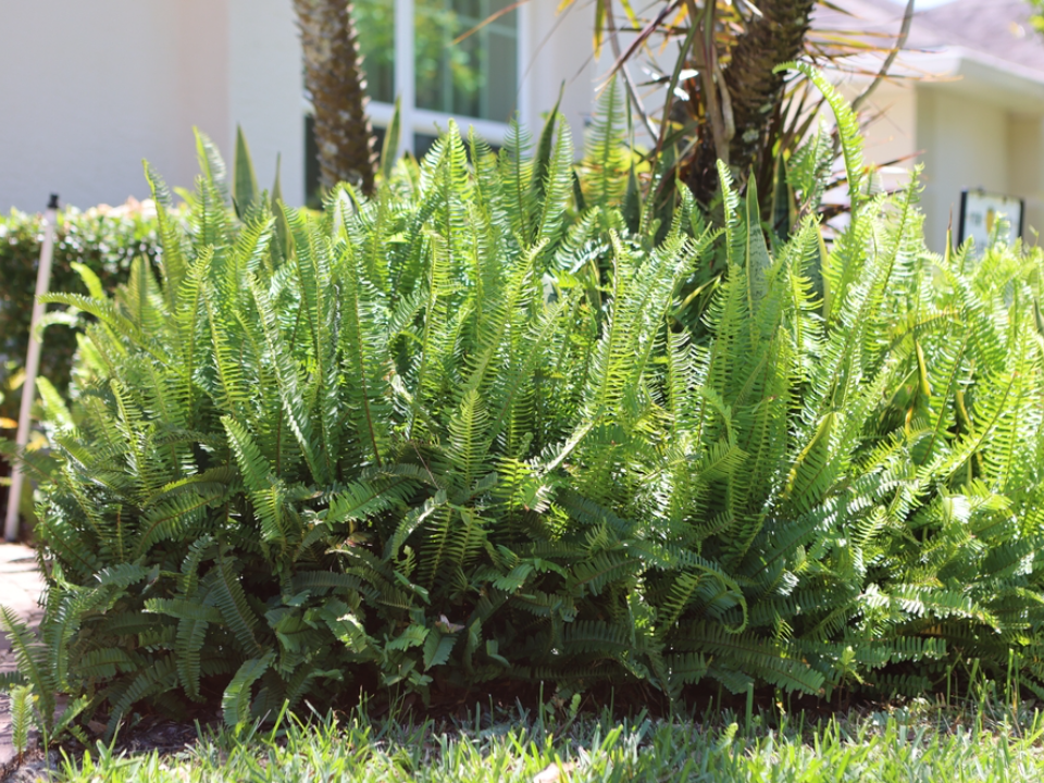 Ferns are slow-growing plants that add a lush, graceful touch to shaded gardens. Their feathery, finely cut leaves create a soft, elegant look, making them ideal for under trees or in shaded garden beds. Ferns thrive in moist, well-drained soil and prefer partial to full shade, though some species can tolerate more sunlight. Because they grow slowly, ferns will not quickly outgrow their space, allowing for easy maintenance.