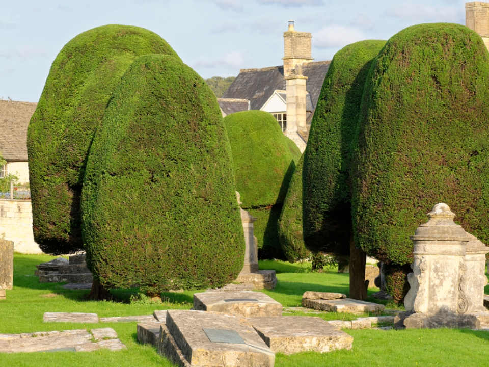 Yews are slow-growing evergreen shrubs or trees that stay neat and tidy throughout their lifespan. They are incredibly versatile, thriving in both sun and partial shade and adapting well to a variety of soil types. Yews do not require much pruning, as they naturally grow in a dense, compact form.