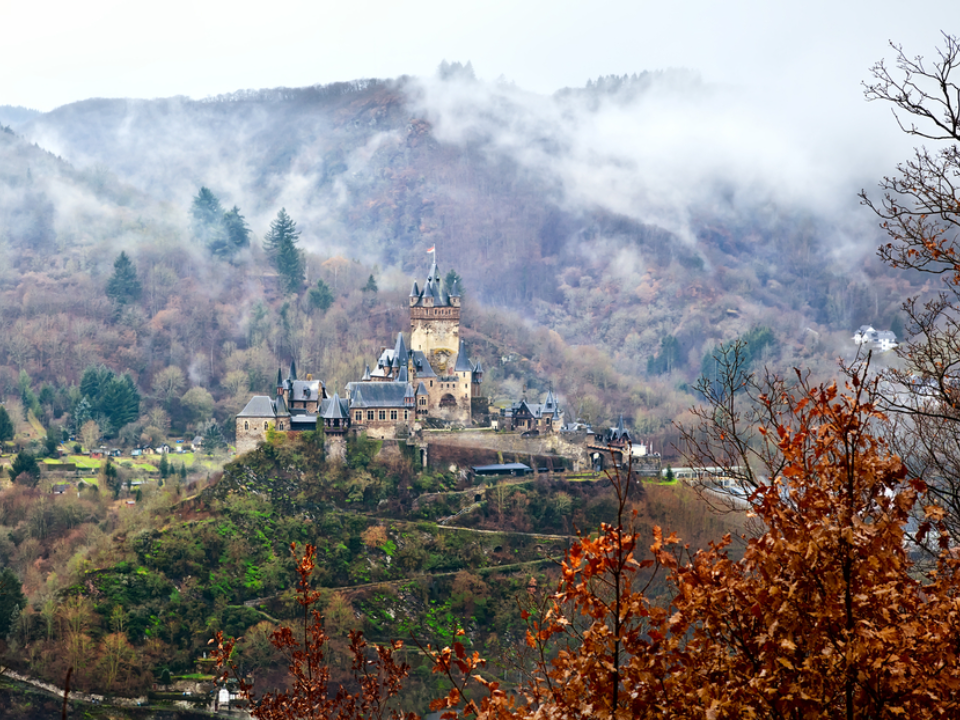 Cochem is a small town along the Moselle River, known for its castle perched on a hill. In autumn, vineyards surrounding the town turn golden, making the scenery especially vibrant. The castle tower provides views of the river winding through a landscape of colorful hills. The cooler air makes boat rides along the Moselle even more refreshing.