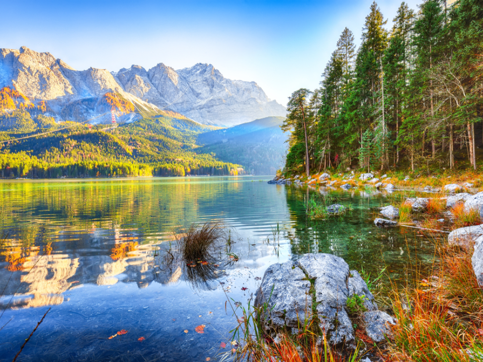 Garmisch-Partenkirchen is a Bavarian town surrounded by the Alps, and in autumn it turns into a sea of golden forests. The mountains create a dramatic backdrop for the town, with misty mornings adding a sense of calm. Visitors can walk through charming streets lined with painted houses and enjoy the cooler weather. The traditional architecture and mountain views feel especially inviting in this season.