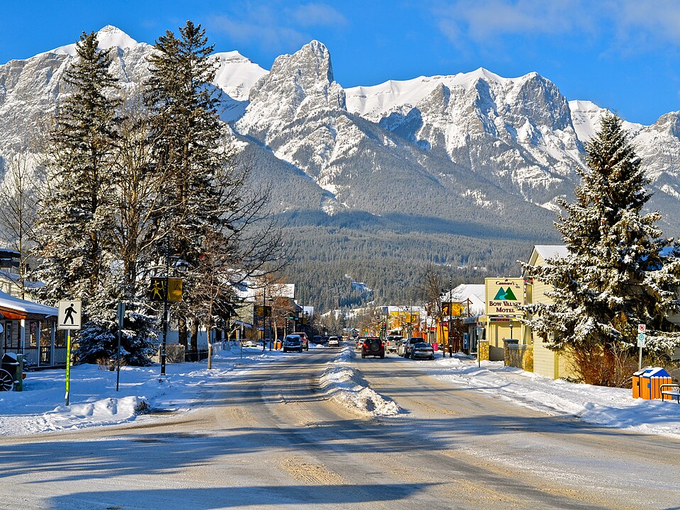 Nestled between peaks, Canmore blends mountain adventure with small-town charm. The air smells of pine, and soft light reflects off the surrounding snow-covered cliffs. Downtown, bakeries and galleries glow through frosted windows, offering warmth and color to cold afternoons. Locals stroll the streets with a calm rhythm, greeting each other as smoke curls from chimneys.