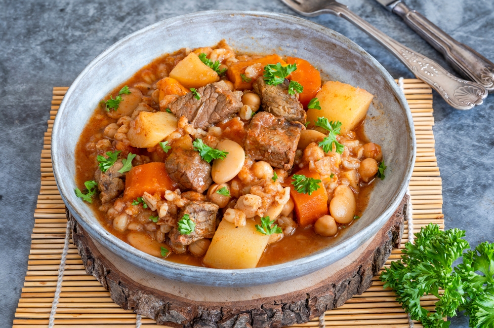 Beef and barley stew is a hearty and comforting dish that’s perfect for chilly fall nights. Start by browning chunks of beef stew meat in a large pot with a little olive oil until the meat is well-seared. Remove the beef and set it aside, then add diced onions, garlic, carrots, and celery to the pot, cooking until the vegetables are tender. Return the beef to the pot and pour in beef broth, water, and a bay leaf. Add a generous portion of barley, and let the stew simmer for about an hour and a half, or until the meat is tender and the barley is fully cooked. Season with thyme, rosemary, salt, and pepper to taste, and finish with a splash of vinegar for brightness.
