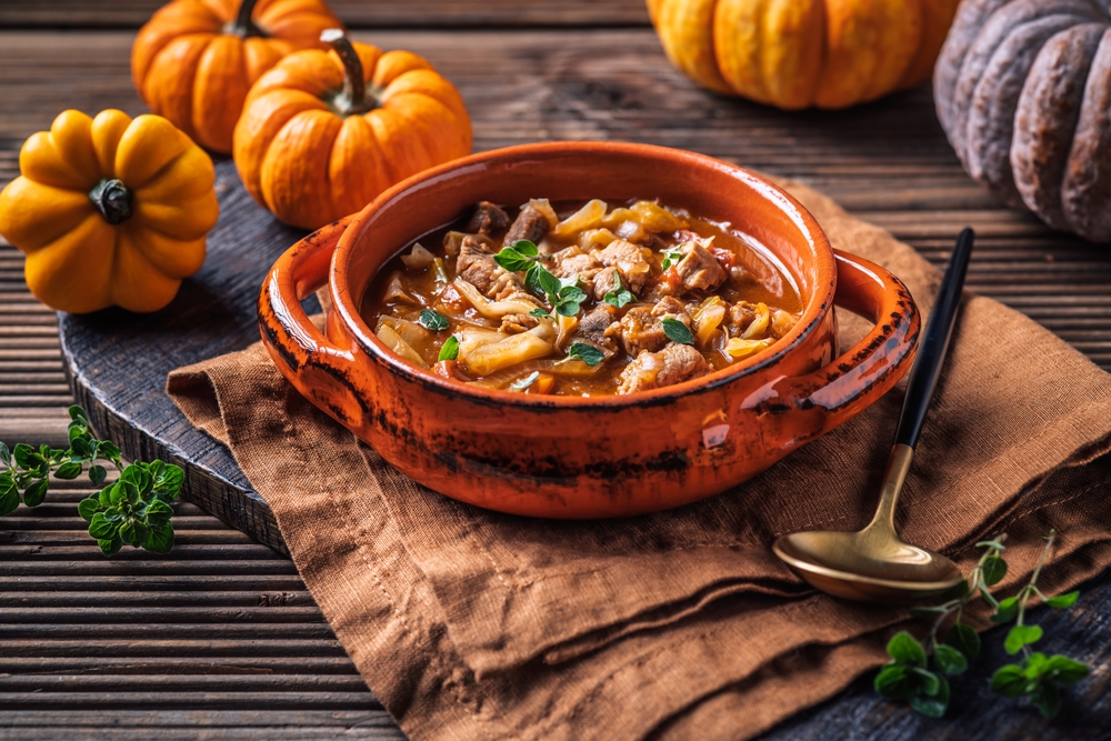 Beef and pumpkin stew is a hearty, savory dish that combines tender beef with the seasonal sweetness of pumpkin. To prepare, start by browning chunks of beef stew meat in a pot, then remove and set aside. In the same pot, sauté onions, garlic, and celery, then add diced pumpkin, potatoes, and carrots. Pour in beef broth and add herbs like thyme, rosemary, and bay leaves. Let the stew simmer for 1-1.5 hours until the beef is tender and the pumpkin has softened. Season with salt, pepper, and a pinch of paprika to add warmth to the flavor.
