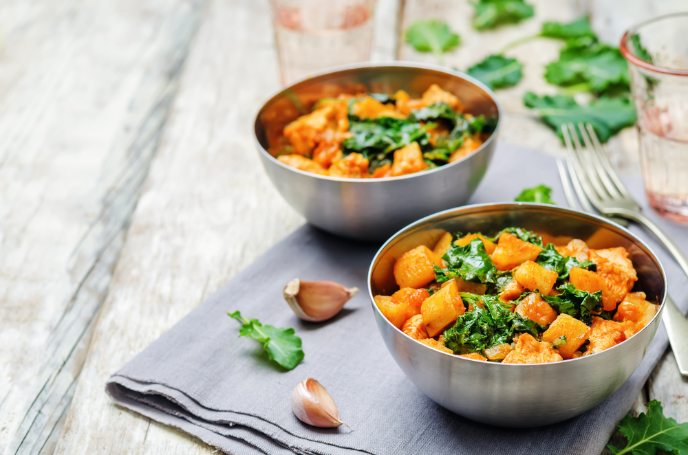 Chicken, sweet potato, and kale stew is a hearty and nourishing dish packed with fall flavors. Begin by sautéing onions, garlic, and celery in olive oil until softened. Add diced sweet potatoes, chicken thighs (boneless or bone-in), and chicken broth. Season with a mix of thyme, paprika, and cumin, then let the stew simmer until the chicken is cooked through and the sweet potatoes are tender, about 30 minutes. In the last 10 minutes, stir in chopped kale and cook until wilted. You can add a splash of lemon juice for brightness, and adjust the seasoning with salt and pepper.