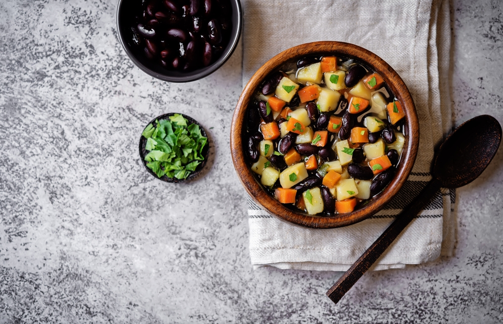 Sweet potato and black bean soup is a flavorful, nutrient-packed dish that combines the sweetness of sweet potatoes with the hearty richness of black beans. To prepare, start by sautéing onions, garlic, and bell peppers in olive oil until softened. Then add cubed sweet potatoes, canned black beans, vegetable broth, and a generous amount of cumin, paprika, and thyme. Simmer the soup for 20-25 minutes until the sweet potatoes are tender and cooked through. You can blend part of the soup for a creamier consistency or leave it chunky for more texture. Once the soup is ready, season with salt, pepper, and lime juice to taste, and top with fresh cilantro and a dollop of sour cream or Greek yogurt for added creaminess.