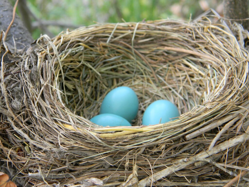 Few spring nests are as easy to recognize as the one made by an American robin. It usually has a sturdy cup shape formed with grass, twigs, and a layer of mud that helps hold everything together. These nests often turn up on porch ledges, tree branches, gutters, and window frames. The bright blue eggs are often the detail that makes people stop and look.