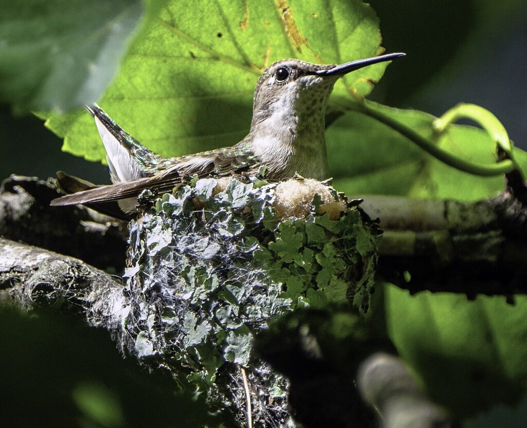 Small enough to be mistaken for a bump on a branch, a ruby-throated hummingbird nest is a remarkable sight. It is made from plant down, spider silk, and bits of lichen, which help it blend into the branch and flex as the chicks grow. The nest is often placed on a slender limb in a quiet spot. Its size is part of what makes it so easy to overlook.