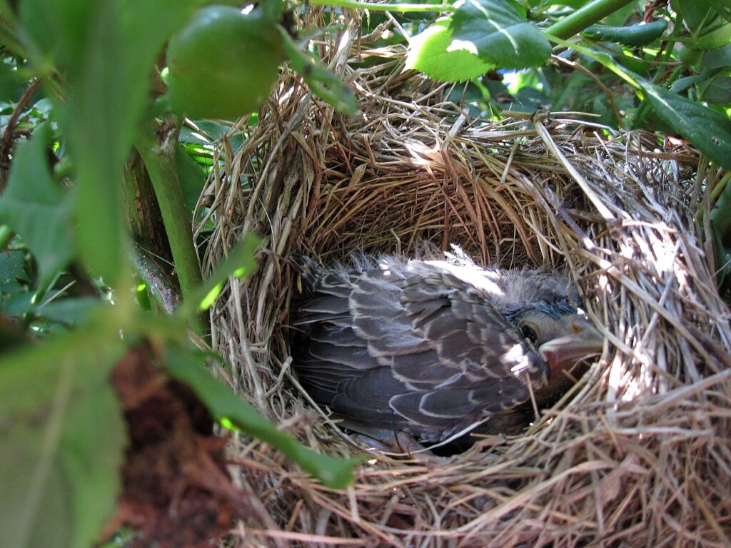 When a nest turns up during garden work, the best response is to stop working in that patch. Reaching in, parting the branches, or trimming back the cover can leave the nest exposed. The birds depend on that leafy shelter for safety. Leaving the area alone for a while gives them a much better chance.