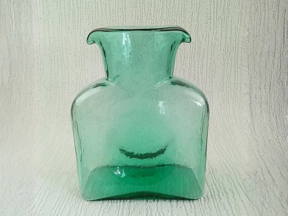 Handblown art glass brings a different feel to a collection, and the Blenko 384 bottle is a well-known example. It is made of handblown art glass, with Spring Green versions described by Blenko as clover cased in crystal. Buyers like the clean shape and fresh green color that stands out in a room. Many examples sell in the $90 to $125 range, with some versions going higher.