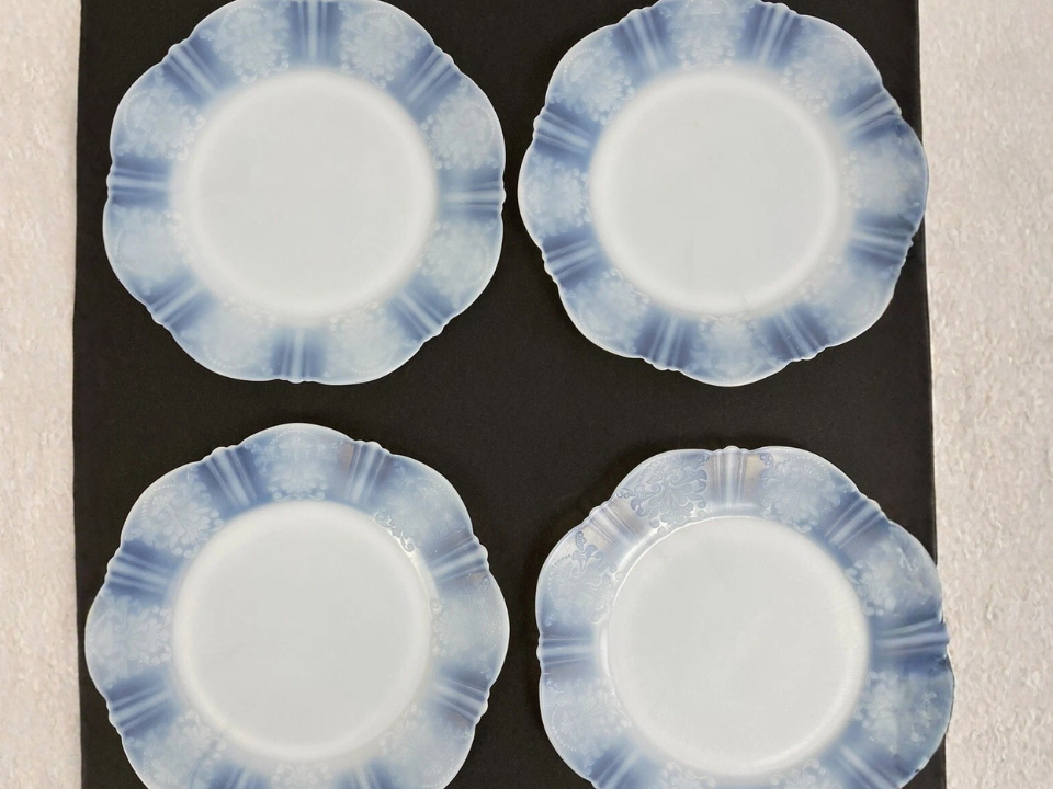 Because the pattern is delicate, many collectors mix it with pink glass, pale green pieces, or white pottery. It works well for display, though it can still be used at the table. Thin rims should be checked carefully for flakes or hairlines. Even one plate can be a nice estate sale find when the surface is still bright.